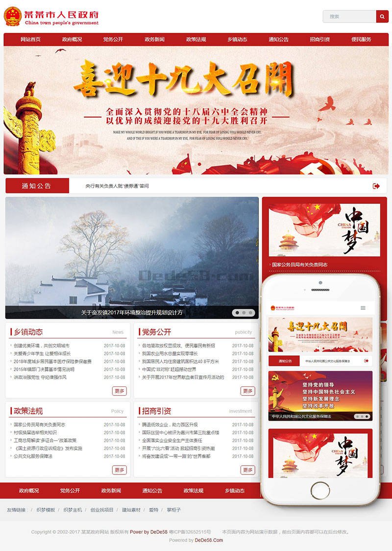 模板介绍: 该模板属于企业通用、HTML5响应式、政府部门、各级单位、各类职能部门单位类企业使用,一款适用性很强的模板,基本可以适合各行业的企业网站! 响应式自适应各种移动设备,同一个后台,数据即时同步,简单适用!原创设计、手工书写DIV+CSS, 完美兼容IE7+、Firefox、Chrome、360浏览器等;主流浏览器; 页面简洁简单,容易管理,内核都可以使用;附带测试数据!